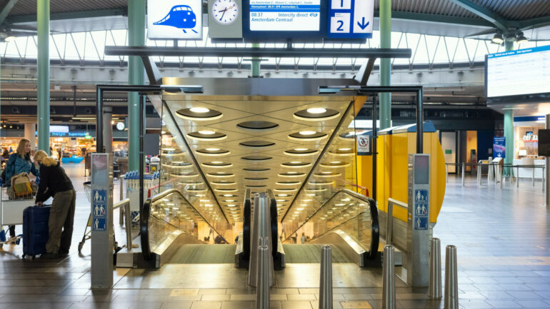 El tren es la manera más práctica y rápida de llegar al centro de Ámsterdam, pero también de moverte a cualquier otro lugar del país. La estación de tren está justo debajo del aeropuerto, solo hay que seguir los carteles amarillos de «Trains».